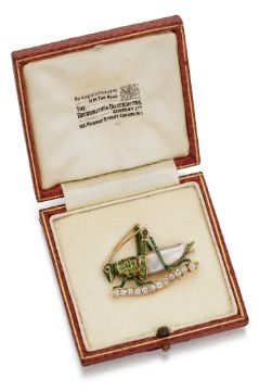 One garnet a modern-cut replacement, some possible re-enamelling. The estimated qualities of the diamonds are; colour: G/H; clarity: SI1/SI2. It fastens with a pin and c-hook. It is not hallmarked or stamped but in our opinion would test as gold.