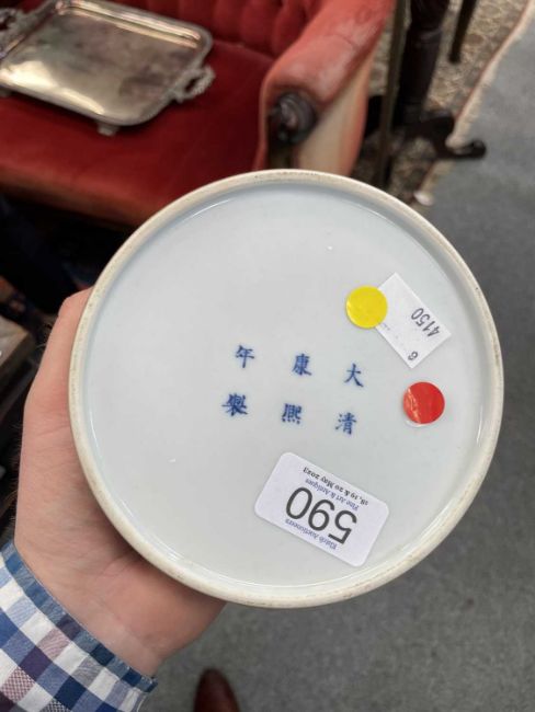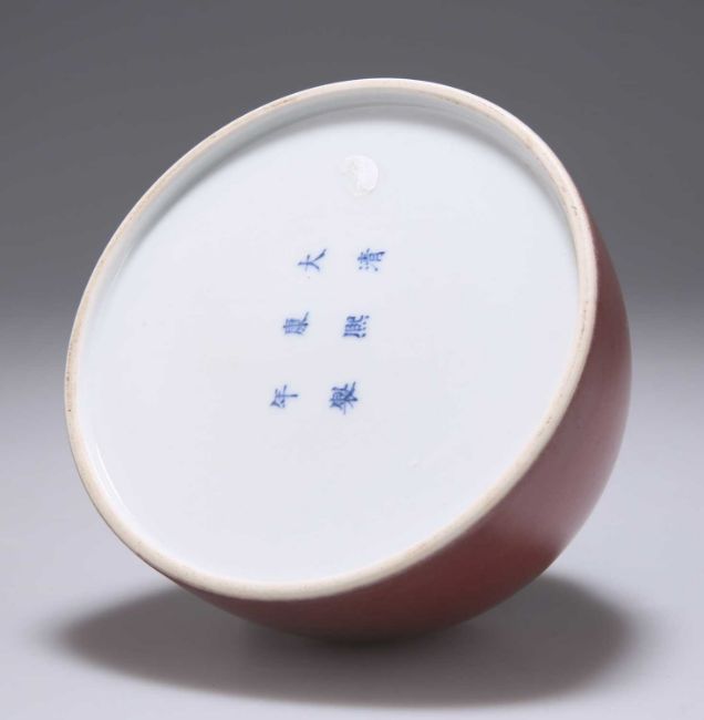of domed circular form, bears underglaze blue six character mark. 13cm diameter