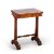 the swivelling and folding top opening to reveal a gilt-tooled leather writing surface, the pillar-ends joined by a turned stretcher and terminating in scroll feet. 74cm high, 53.5cm wide, 36.5cm deep