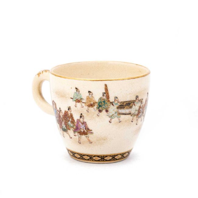 painted with a procession of figures, embellished with gilding. 4.7cm high