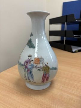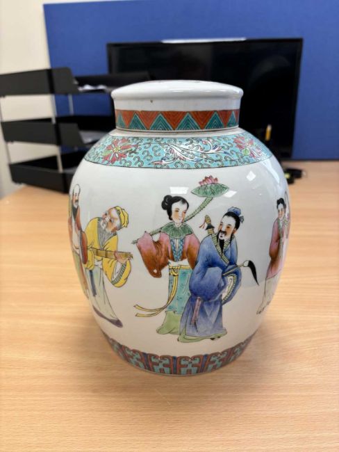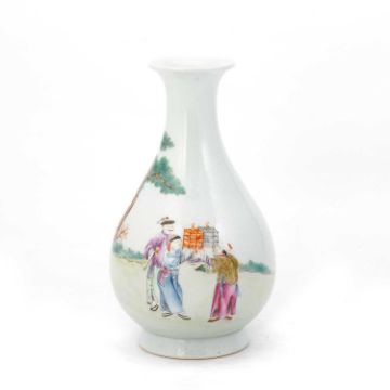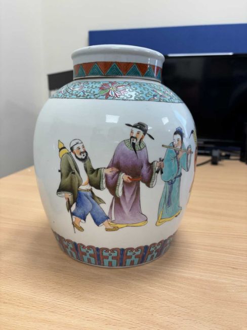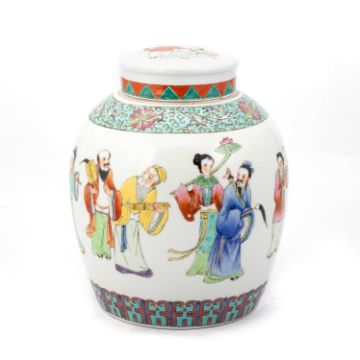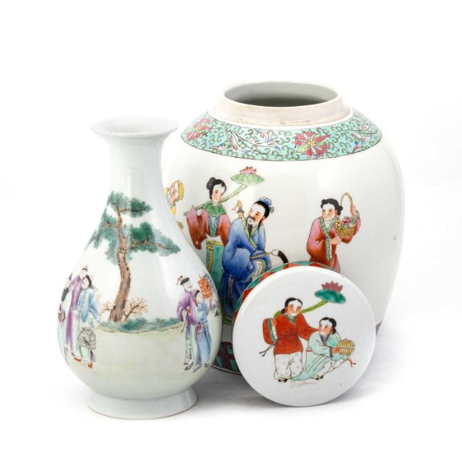 the pear-shaped body painted with figures; together with a large Chinese ginger jar and cover. (2) First 21.5cm high