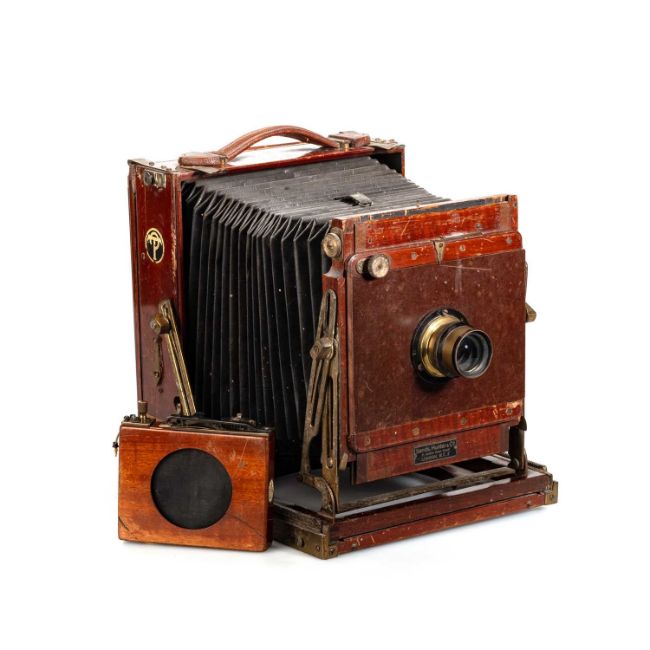 by Thornton-Pickard Manufacturing Company Ltd., brass and mahogany; together with a Thornton-Pickard 'Time' roller shutter. (2)