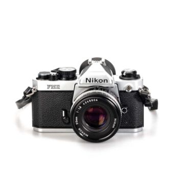 chrome, serial no. 7835326, with a Nikon Nikkor f/1.8 50mm lens, serial no. 4368804, with a case.