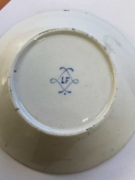 A few 'jewels' missing. No chips, cracks or restoration. Some surface wear and flaws in the gilding. In generally fair condition commensurate with age.