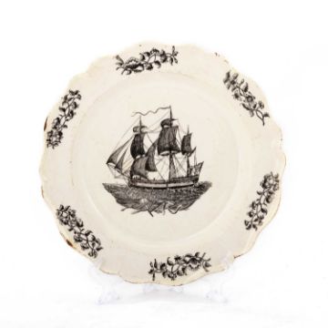 printed with a ship within a floral border. 25cm diameter