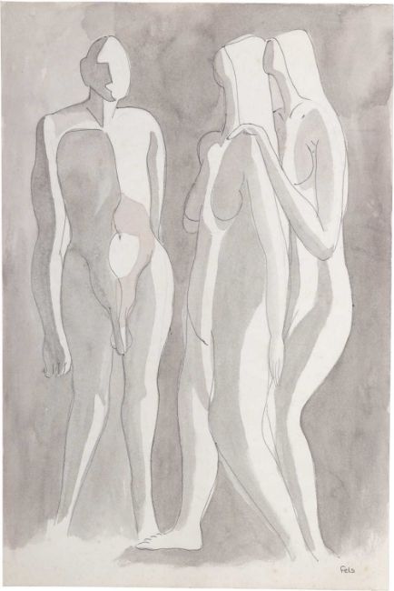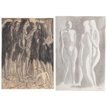 DOMINIC FELS (1920-1984) TWO FIGURAL STUDIES ‡ Signed and one dated (19)59Pencil, wash and charcoalUnframed Largest 37.5cm x 27cm Qty: 2