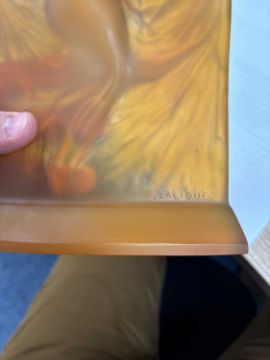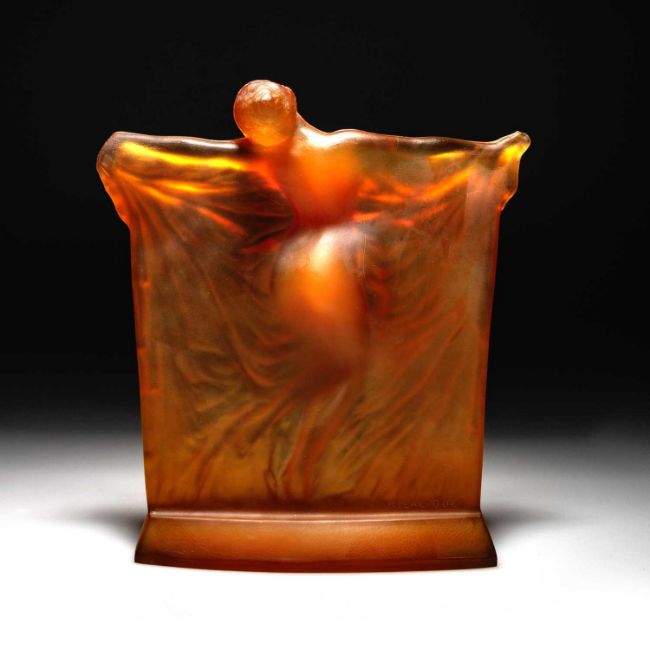 RENÉ LALIQUE (FRENCH, 1860-1945), A 'THAÏS' STATUETTE, DESIGNED 1925 deep butterscotch coloured opalescent glass, press-moulded, frosted and polished, engraved R. LALIQUE. 21cm high No visible chips or cracks. In generally very good condition.Because of the difficulty in determining whether an item of glass has been repolished, reference is only made to visible chips and cracks. No mention is made of repolishing, severe or otherwise.