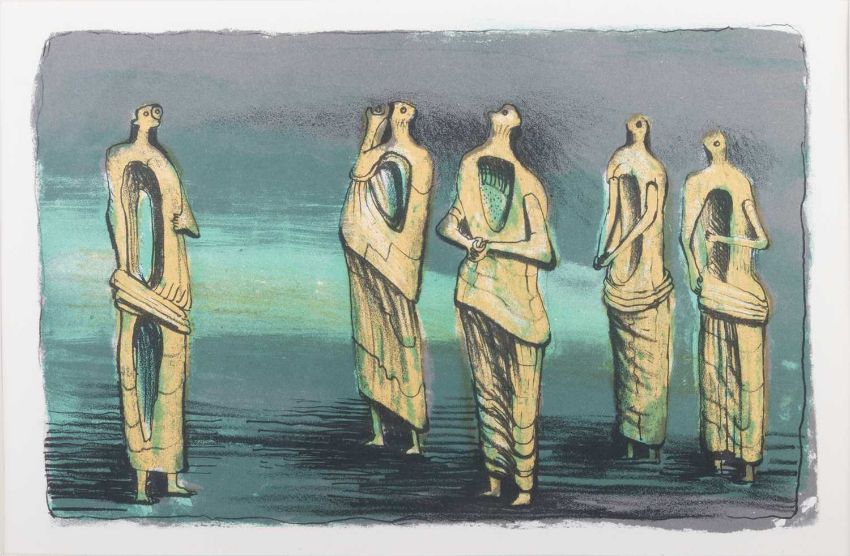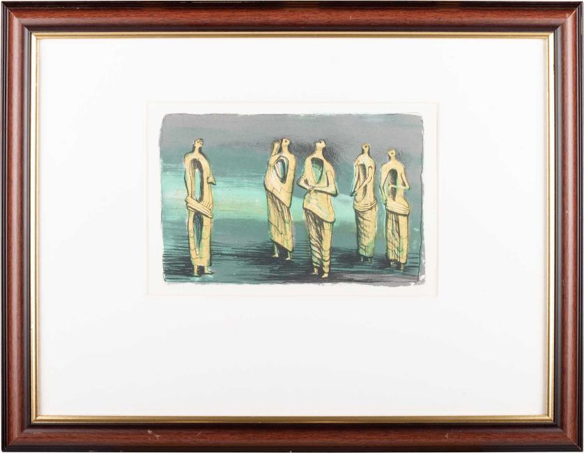 AFTER HENRY MOORE (1898-1986) STANDING FIGURES, 1950 ‡ Inscribed on verso of mount.Lithograph 15cm x 22cm