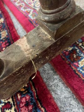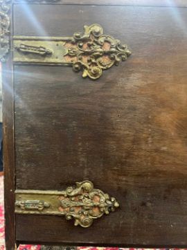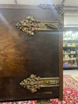 Worm holes to the stand. The stand is structurally sound. Surface marks to the cabinet and the interior is clean. One handle is loose to the cabinet.
