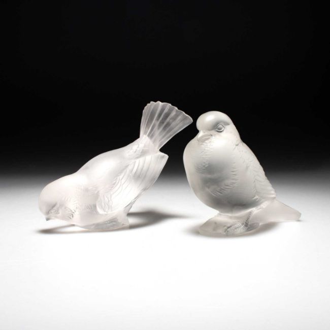each of clear glass, moulded and frosted, stencilled R. LALIQUE marks. (2) Tallest 9.2cm