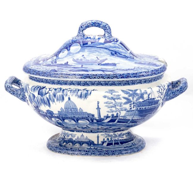 the soup tureen impressed and printed SPODE, vegetable tureens with printed SPODE mark. (3) Soup tureen 25cm high