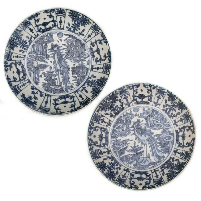 painted with birds amidst foliage. (2) 37.5cm diameter