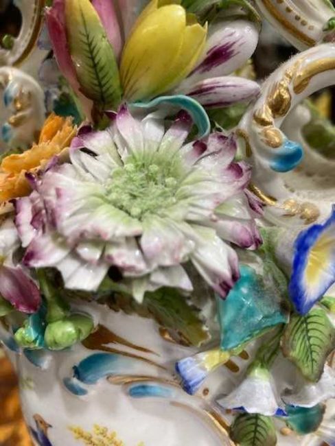 Several losses to the petals and leaves, the vases are in sound condition, no cracks or losses to rims or bases
