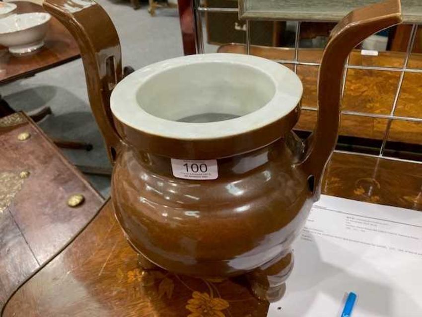 13. Warehousing: We disclaim all liability for goods delivered to our saleroom without sufficient sale instructions and reserve the right to make a minimum warehousing charge of £2 plus V.A.T. per lot per day for small items and £10 plus V.A.T. per day for furniture and oversized items. Unsold lots are subject to the exact charges if you do not remove them within a reasonable time of notification. If not removed within three weeks, we reserve the right to sell them and defray charges from any net sale proceeds or at your expense to consign them to the local authority or in-house skip for disposal.