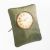 import marks, P H Vogel & Co, London 1923, the dial signed FINNIGANS, with an easel back, decorated with radiating green enamel. 14cm high, 11.2 troy ounces gross
