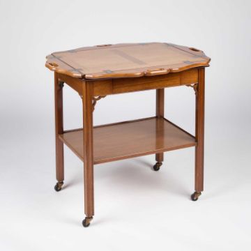 the removable tray top with hinged sides, the trolley with a frieze drawer and moving on castors. 93cm high overall, 77cm long (closed), 55cm wide (closed)