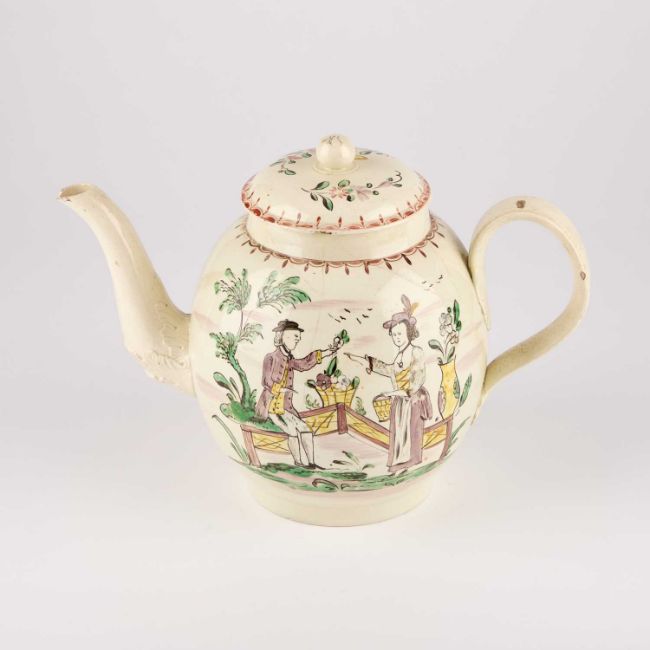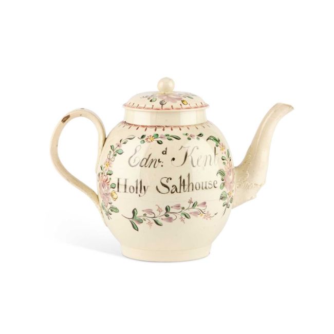 painted with a gentleman handing a flower to a lady on a terrace, the other side inscribed Edwd Kent / Holly Salthouse. 19cm high