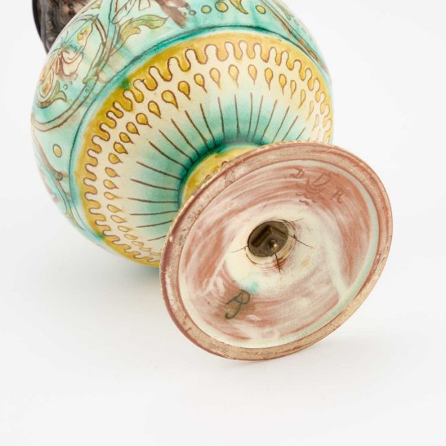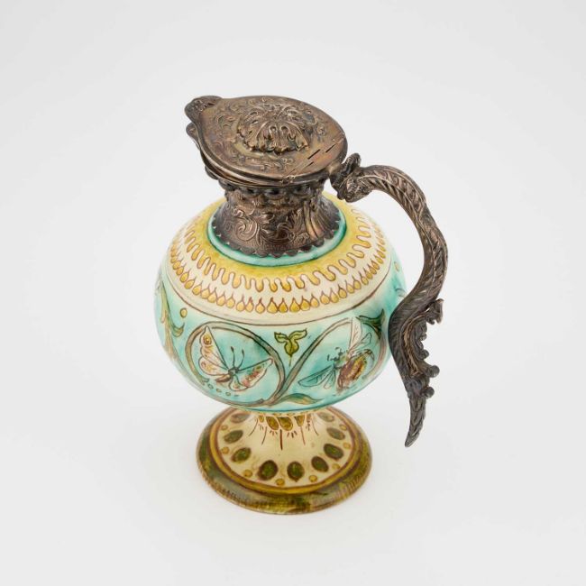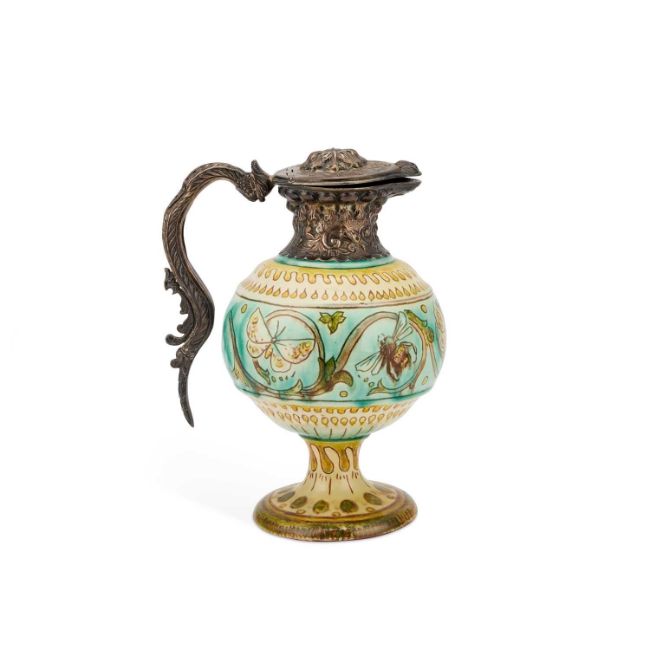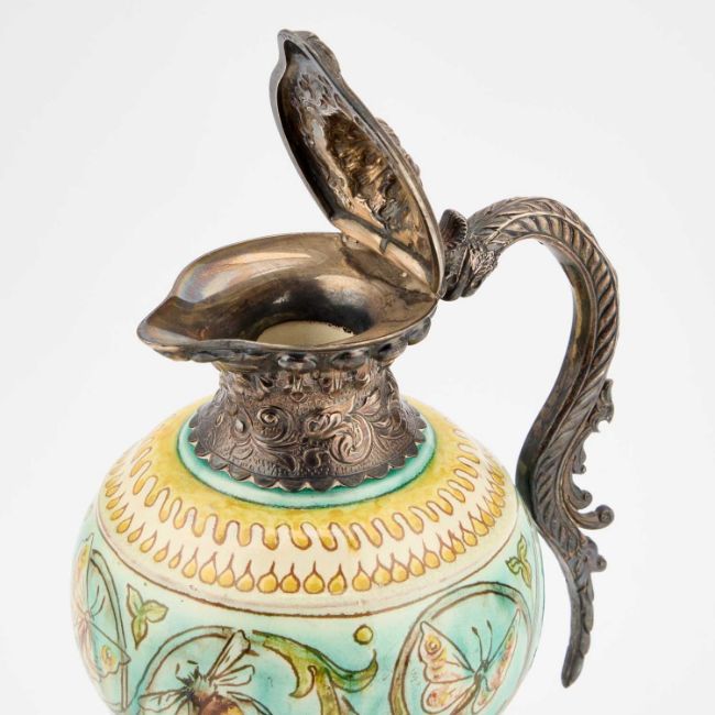 the silver by John Grinsell & Sons, London 1896, incised and painted pottery marks. 18cm high