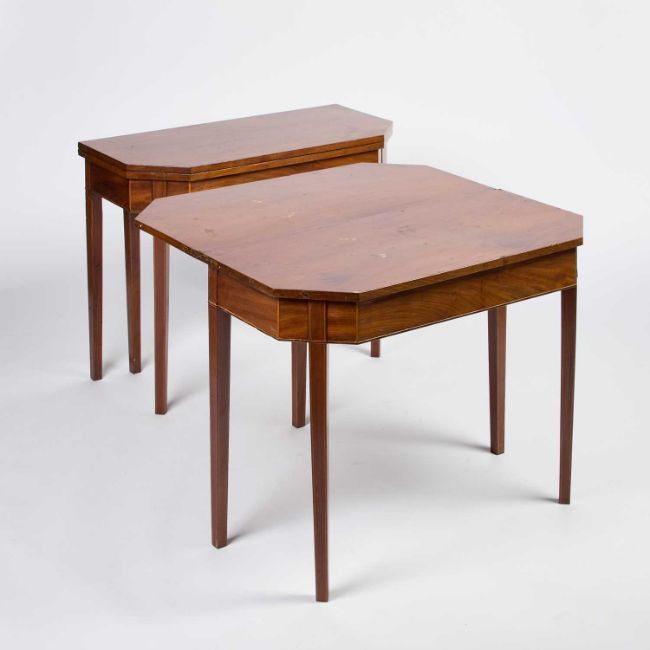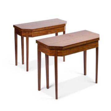 raised on square-section tapering legs. (2) 76.5cm high, 98cm wide, 47cm deep (closed)