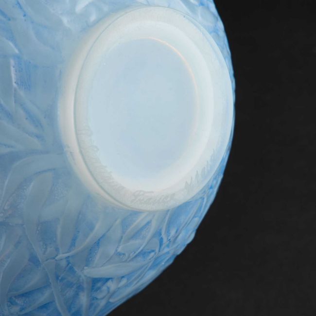 opalescent glass with blue staining, etched R. Lalique France. 16cm high