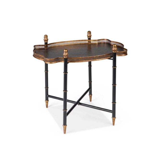 the shaped tray raised on a holding stand. 61cm high, 72cm long, 51cm wide