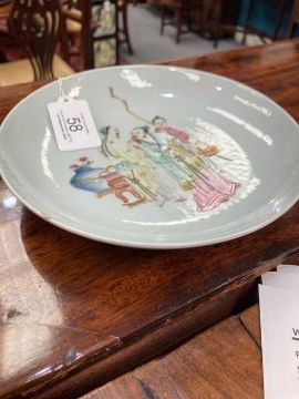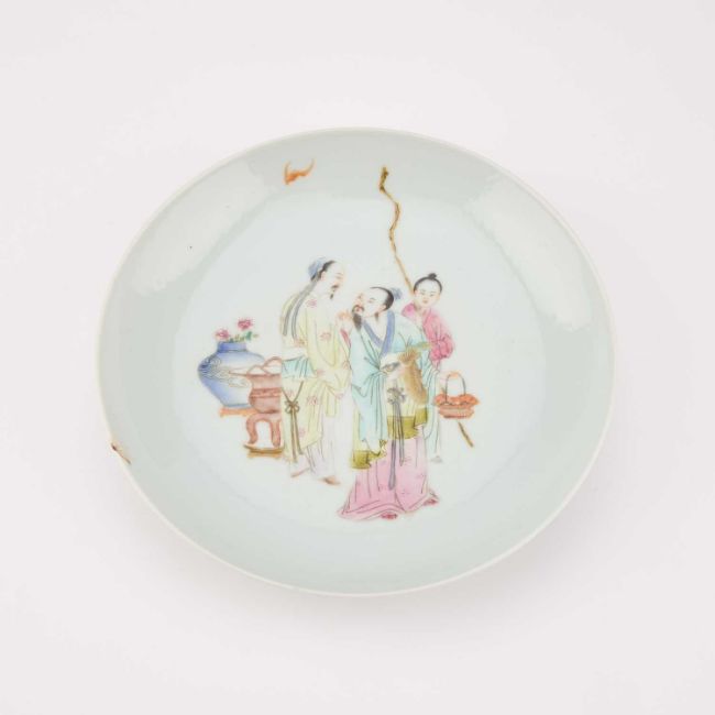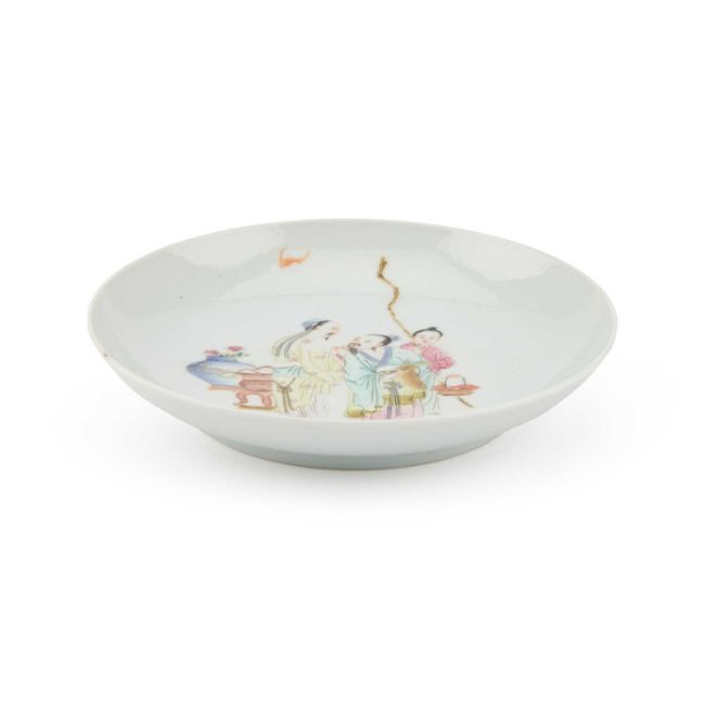 painted with figures, bearing an iron-red four-character mark. 16.5cm diameter