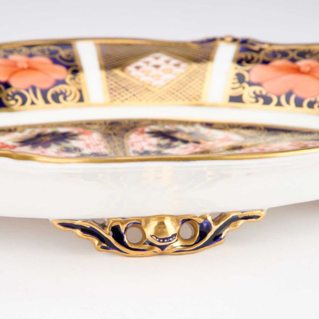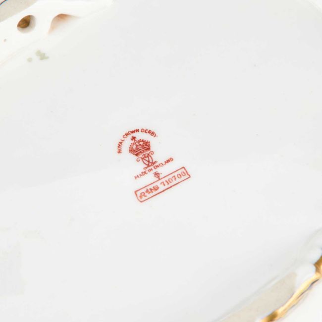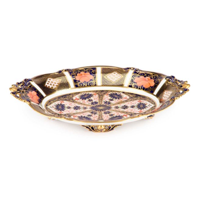 shaped oval form, with acorn handles, red printed factory mark. 29.5cm long