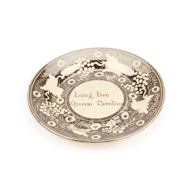 possibly North Hylton Pottery, inscribed Long Live Queen Caroline, within a scrolling vine border. 19.5cm diameter