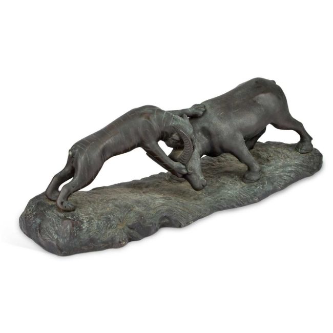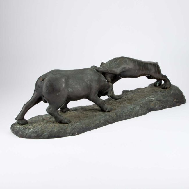 apparently unsigned, on a naturalistically cast base. 64cm long