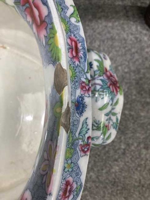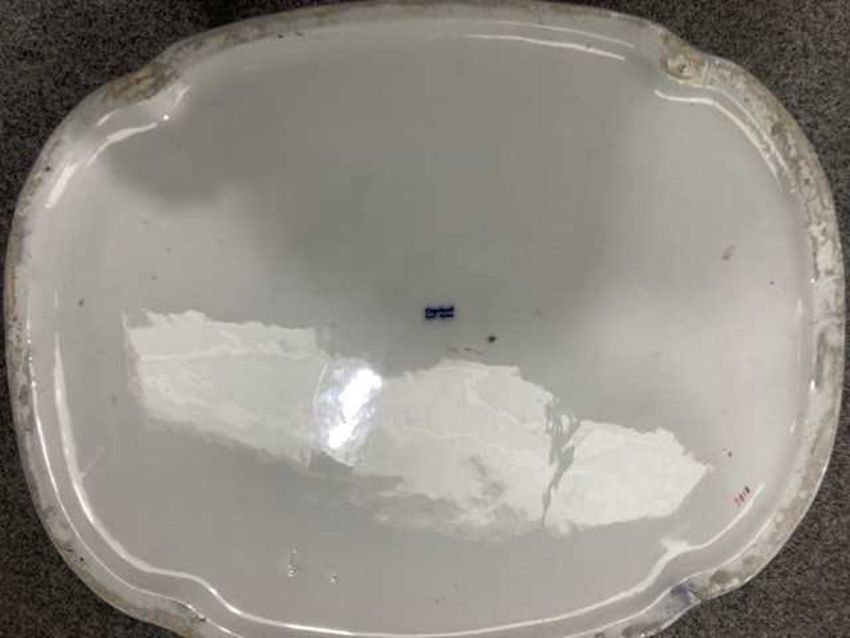 Two old chips to the rim both about .75mm in width, pattern mark 8186 painted in red, stamp mark and impressed marks to base, no visible signs of damage or restoration