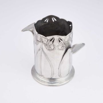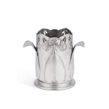 of cylindrical form, decorated with stylised foliage, with two everted handles, no. 0626, stamped marks. 16cm high