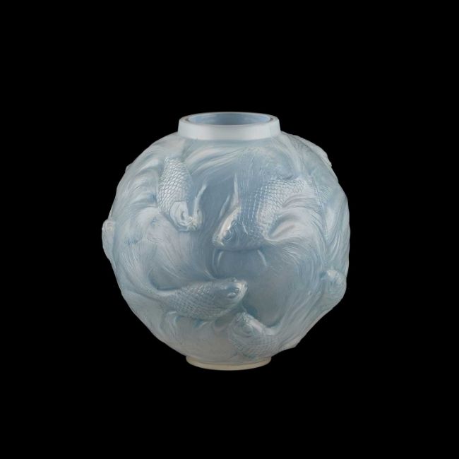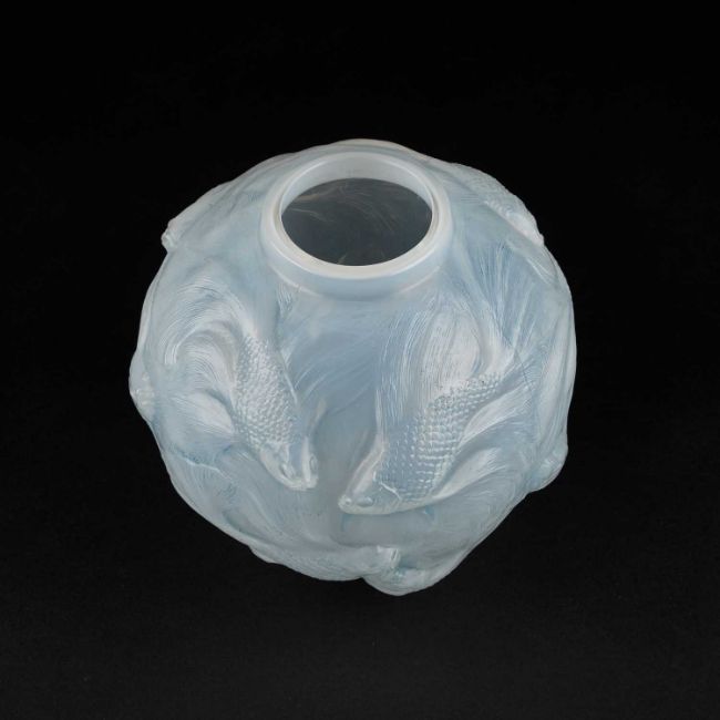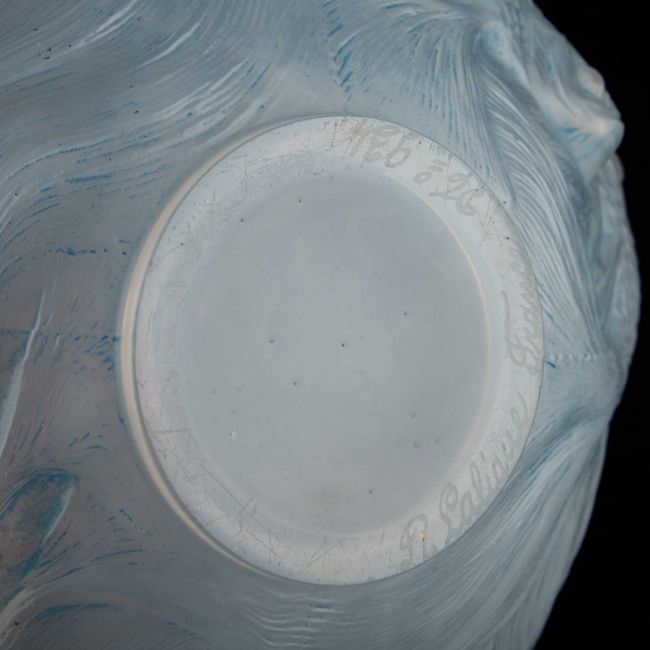 opalescent glass, remnants of blue staining, etched R. Lalique France and no. 934. 17cm high