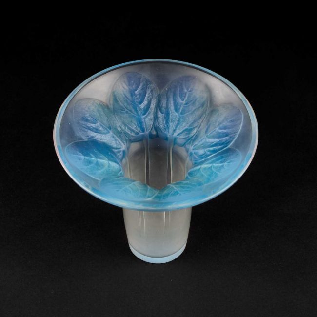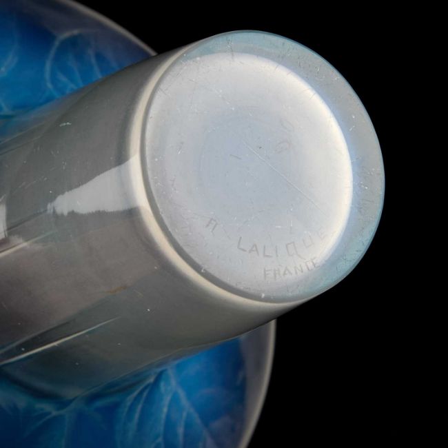 opalescent glass with blue staining, frosted and polished, etched no. 930, signed R LALIQUE FRANCE. 15.5cm high