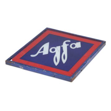 the glass panel sitting within a painted metal frame. 48cm by 35.5cm