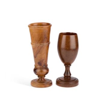 the first with a tapering cylindrical bowl, the second with an ovoid bowl. (2) Tallest 27cm high