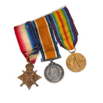 comprising a War Medal, Victory Medal and 1914-15 Star, awarded to 20699 Pte. H.W. Nicholls Worc. Regt, mounted on a bar.