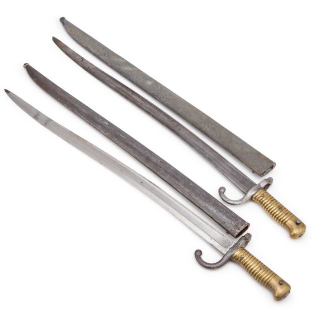 comprising serial no. RT 2806, dated 1873 and serial no. B 46233, dated 1870, both with a scabbard. (2) Each 71cm long