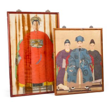 19TH/EARLY 20TH CENTURY CHINESE SCHOOL TWO ANCESTOR PORTRAITS Gouache on paper 148cm x 93cm Largest Qty: 2
