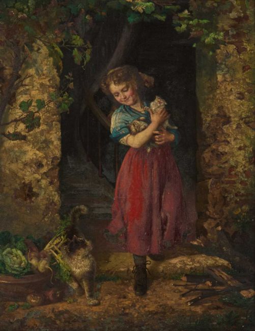 FRANK ALBERT PHILIPS (AMERICAN 1830-1905) PETS Signed and dated 1884, inscribed versoOil on canvasProvenance: With H Weston, Essex, label verso 40cm x 31cm