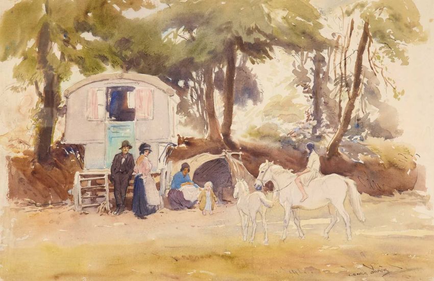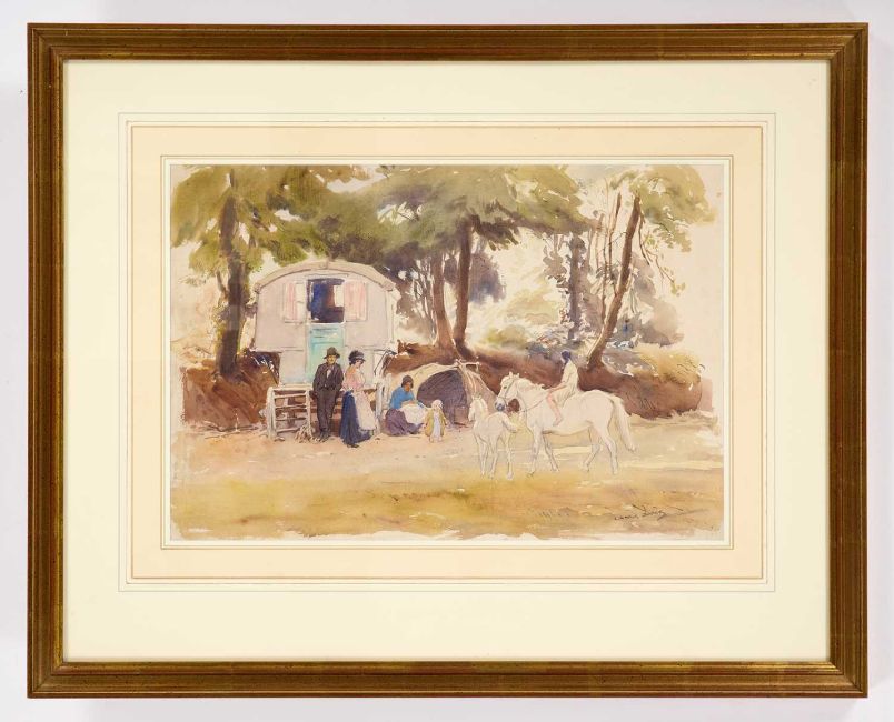 GEORGE SOPER RI (1870-1942) TRAVELLERS OUTSIDE THEIR CARAVAN SignedWatercolourProvenance: With Chris Beetles Ltd, The Estate of George and Eileen Soper 30cm x 44cm