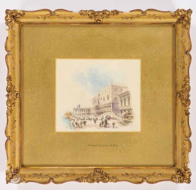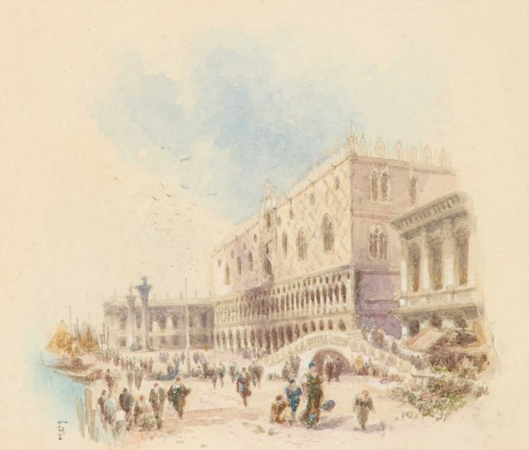 MYLES BIRKET FOSTER RWS (1825-1899) THE RIVA DEGLI SCHIAVONI AND THE DOGE'S PALACE, VENICE MonogrammedWatercolour 14cm x 16.5cm