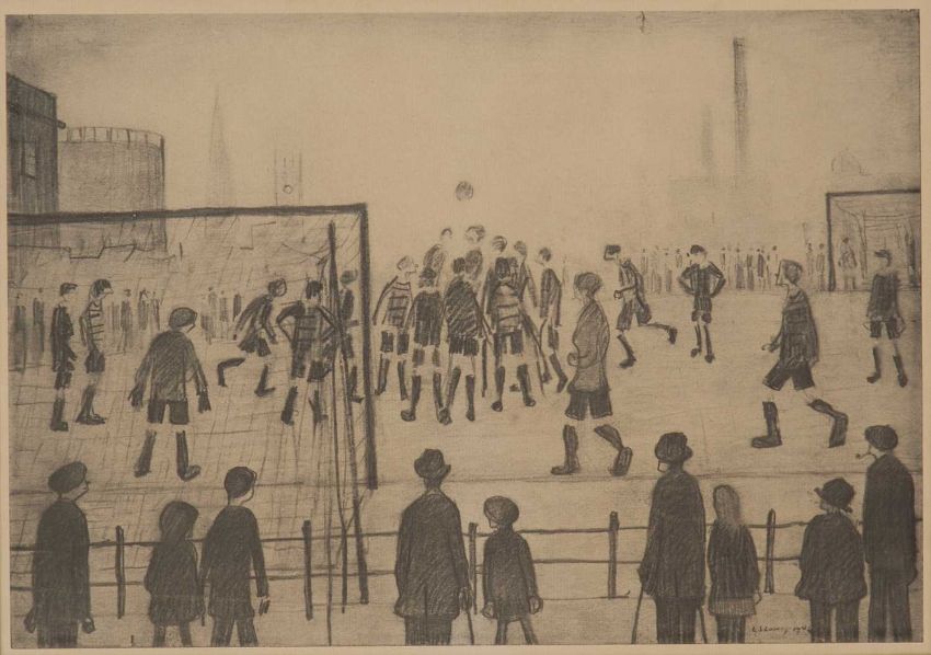 AFTER LAURENCE STEPHEN LOWRY RBA, RA (1887-1976) THE FOOTBALL MATCH ‡ Print on wove paperunsignedMounted but unframed 26cm x 37cm