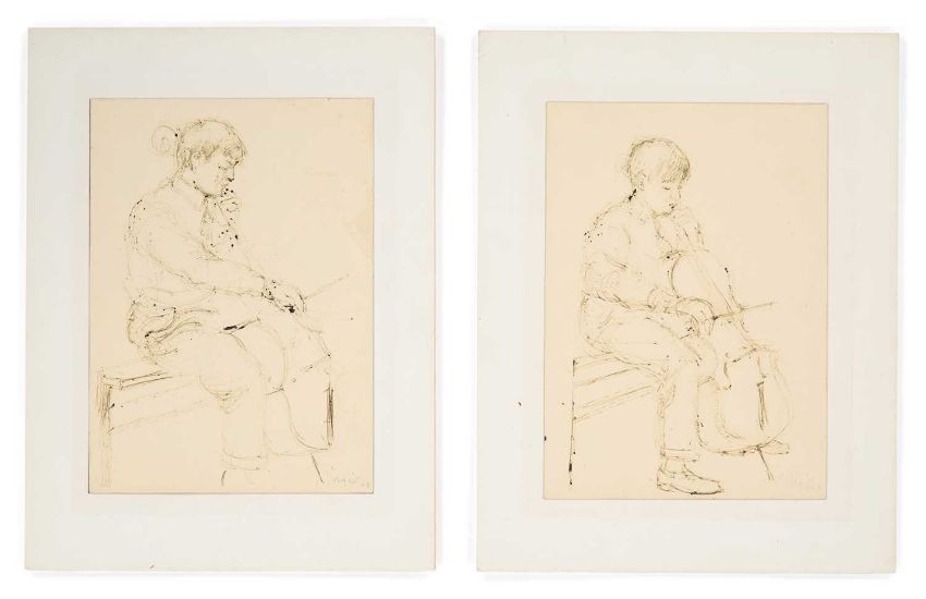GIORGIO (20TH CENTURY ITALIAN SCHOOL) TWO STUDIES OF BOYS PLAYING THE CELLO ‡ Signed and dated (19)63Pen and inkUnframed 20.5cm x 14.5cm each Qty: 2