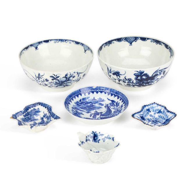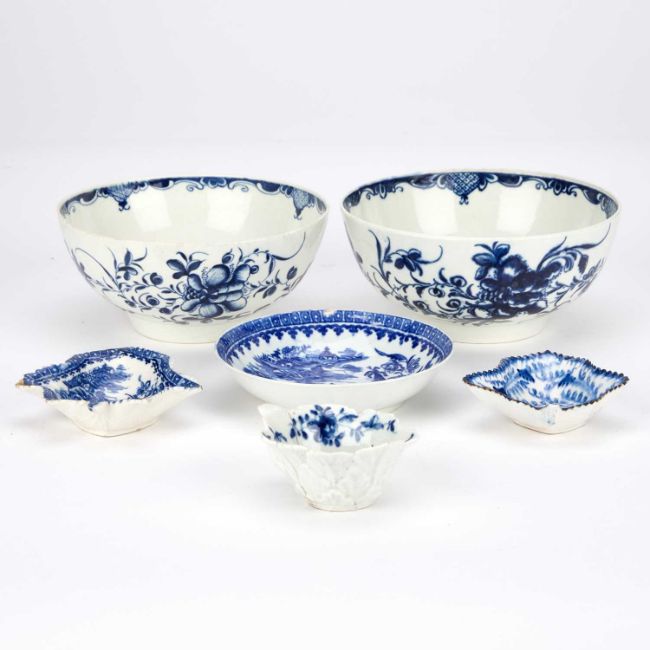 including a Worcester butter boat, bow pickle dish, etc. (6) Largest bowl 15.5cm diameter