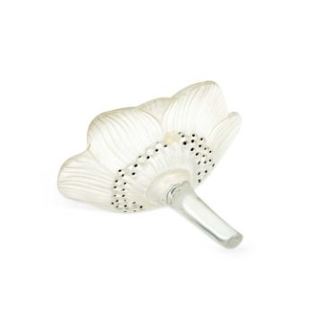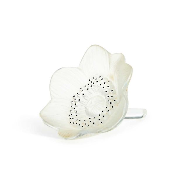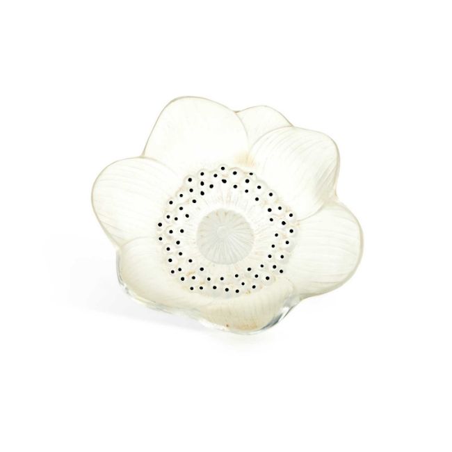 frosted glass with black enamel, etched Lalique France signature. 10.5cm diameter
