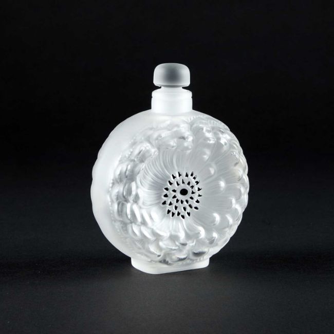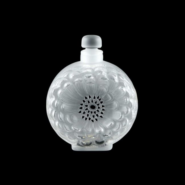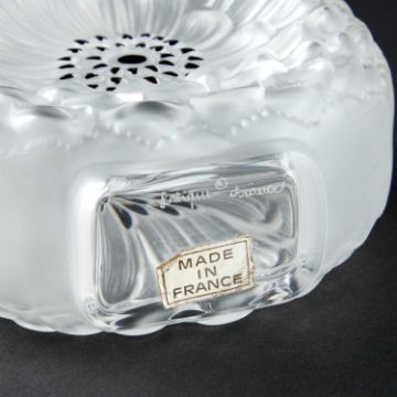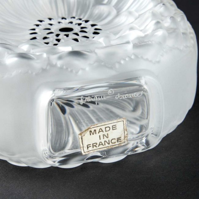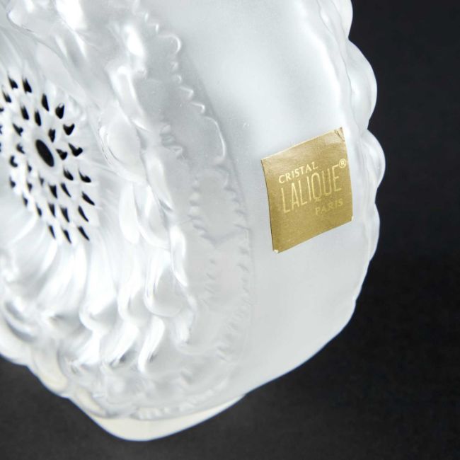 frosted glass with black enamel, signed Lalique ® France and retaining labels. 13cm high