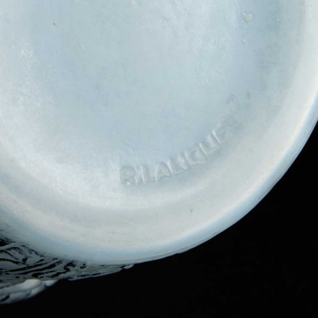 opalescent and black stained glass, moulded R. LALIQUE signature. 20.5cm high